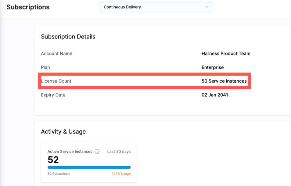 You can view and manage module subscription details as well as license information directly within your Harness account. This includes monitoring current subscriptions, reviewing license allocations, and adjusting as necessary to meet your organizational needs.