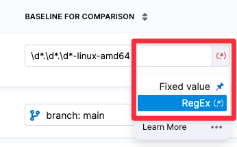- You can specify a baseline using a fixed value or a regular expression (RegEx).