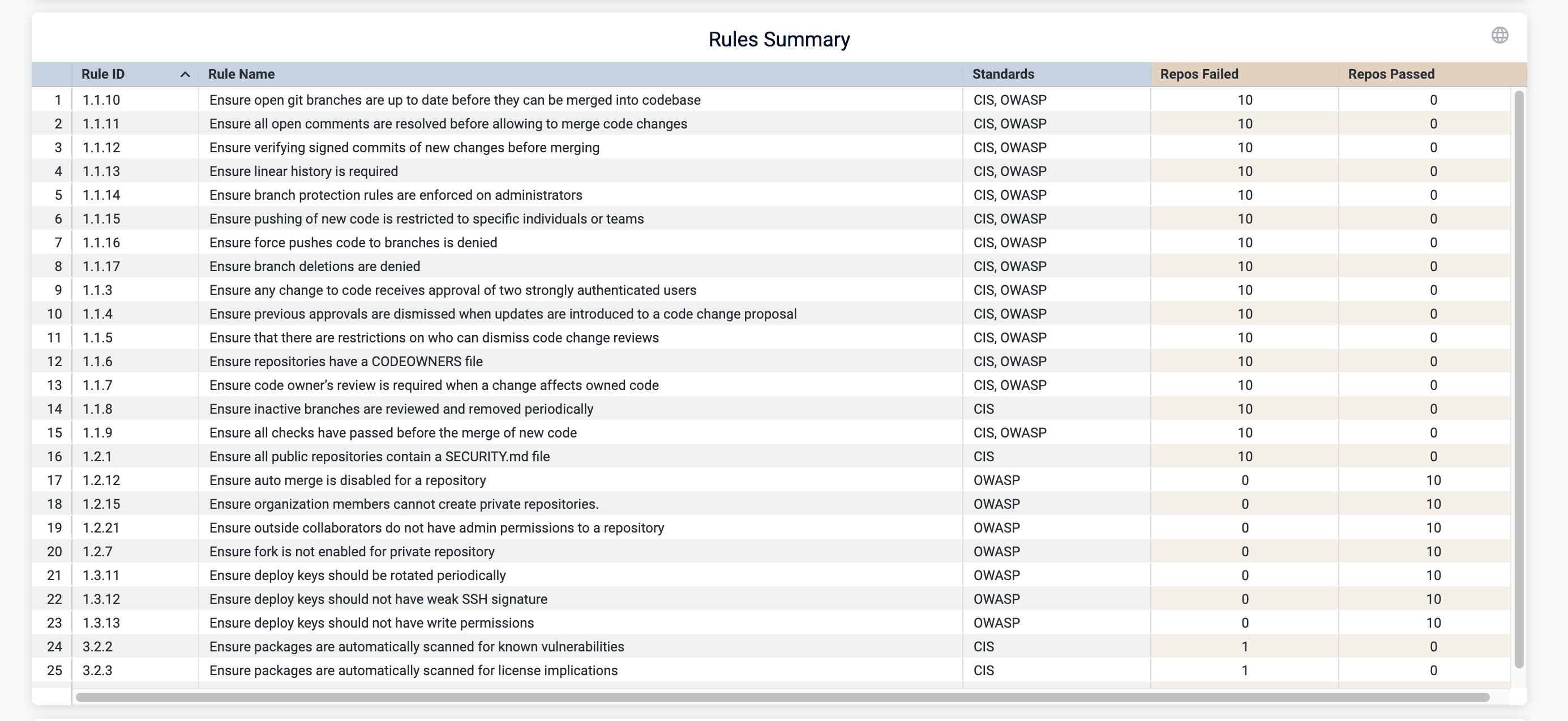 Repos Passed: Number of repositories that passed this rule.